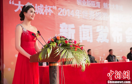 近日,2014世界旅游小姐浙江赛区召开新闻发布会,拉开了2014世界旅游小姐大赛选拔的大幕。2013世界旅游小姐中国区总决赛冠军丁婉苧惊艳亮相,与嘉宾分享美丽心得。对于成功秘诀,丁婉苧则表示保持轻松心态、充满自信地面对每一次亮相最为重要。中新社发 钟欣 摄