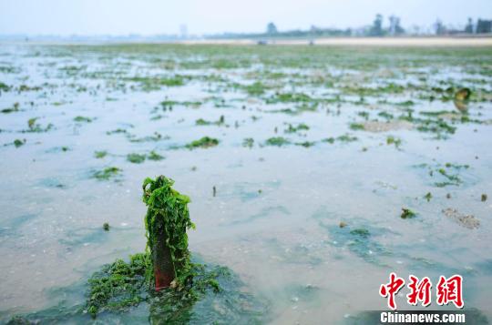 3月12日,广西北海高德镇附近海域海滩被绿藻侵袭。翟李强 摄
