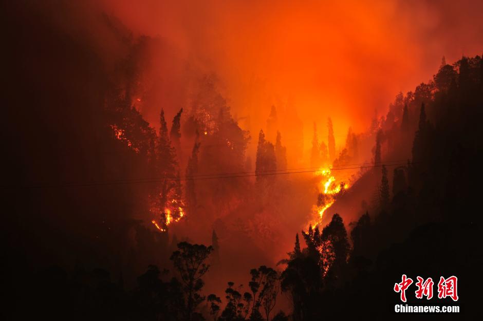 3月18日,四川凉山州西昌市经久乡马鞍村发生森林火灾,当地迅速组织167人(其中武警67人)采取直接扑打和开设隔离带相结合的方式展开扑救。国家森林防火指挥部已紧急调派两架直升机(1架米-26、1架卡-32)在火场实施吊桶灭火作业。火场林相为云南松、栎类和杂灌等,过火面积和起火原因正在调查。受火灾影响,西昌城区和礼州、月华、川兴、冕宁县漫水湾等乡镇出现大面积停电,经抢险人员紧急排查抢修,停电区域已逐步恢复供电。中新社发 蒋志明 摄