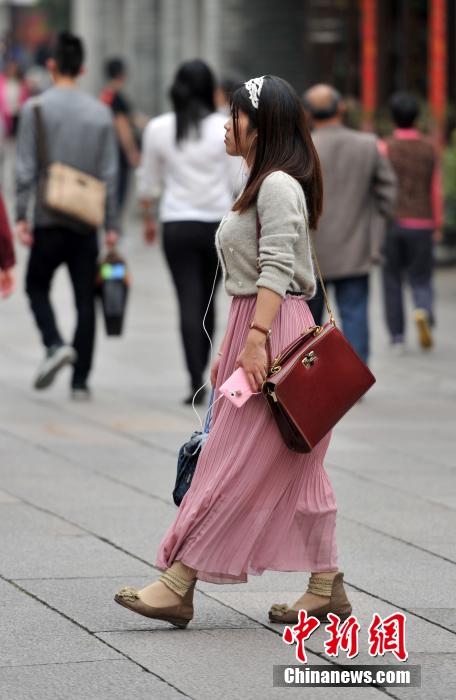 3月18日,福州街头美女轻装出行。当日福州最高气温达28度。中新社发 吕明 摄