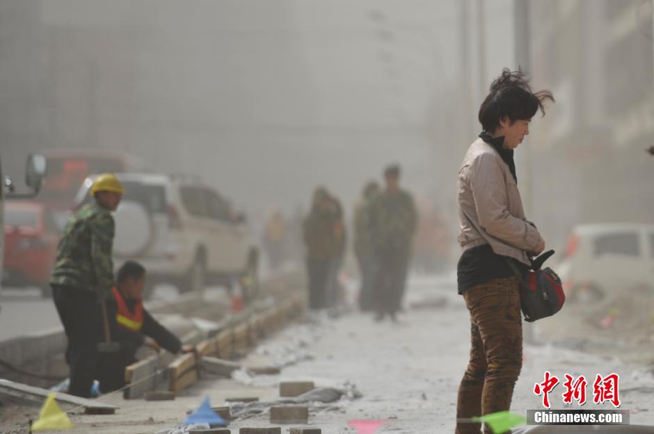 3月19日下午,短时七级大风突袭山西太原,出行民众猝不及防。短时大风伴随着扬沙致使当地沙尘漫天,空气污染严重。山西省气象台发布大风蓝色预警,预警区域在未来24小时内有4至6级、短时7级或以上西北风,部分地区伴有扬沙或浮尘。中新社发 韦亮 摄