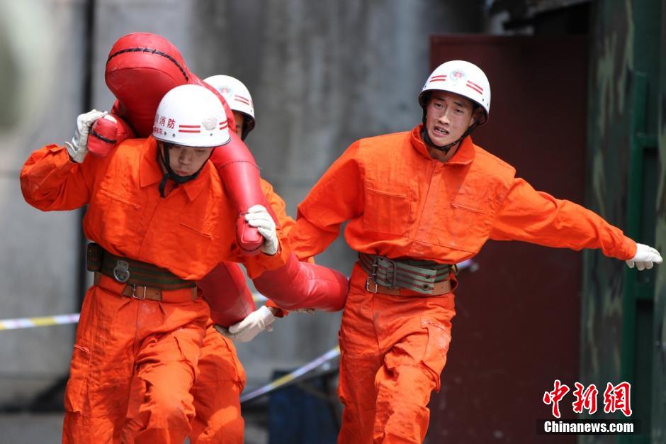 四川攀枝花消防比武竞赛队员争当“武状元”