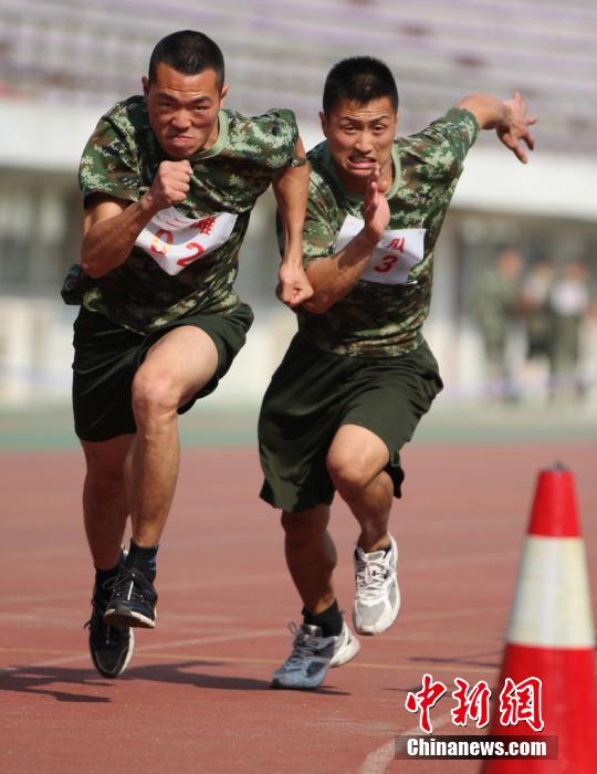 图为两名参赛消防队员正在进行400米赛跑。王川源 摄