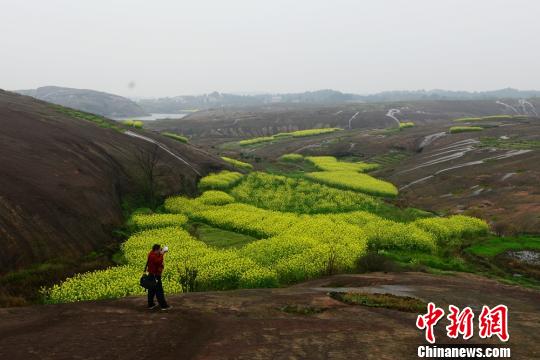 3月20日,湖南安仁县渡口镇丹霞地貌区的油菜花盛开,吸引了众多摄影爱好者前来拍摄。金黄的油菜花配上独特的丹霞地貌,构成了一道美丽的风景线。杨华峰 摄
