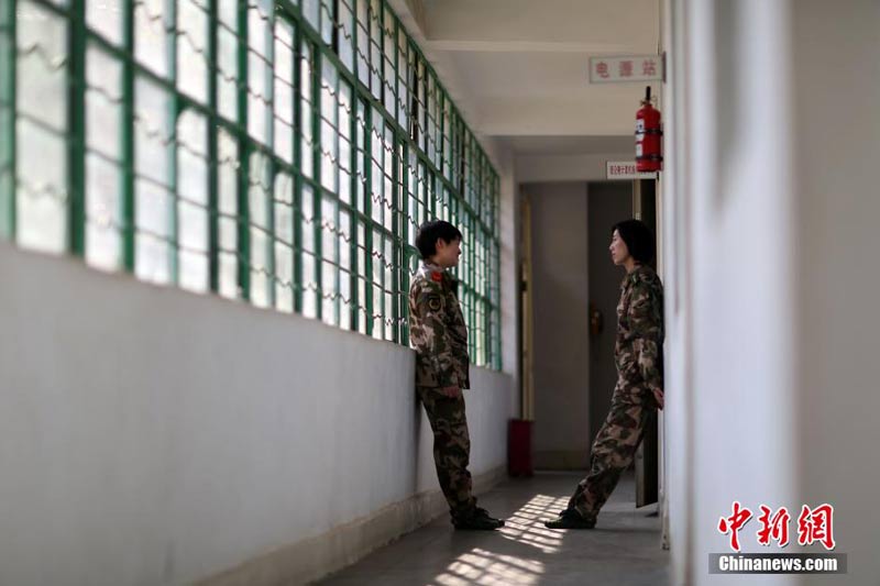 3月18日,王悠在机房练习听力(多重曝光)。出生在湖北荆门的90后女生王悠2012年从湖北荆楚理工学院医学院毕业后,选择了参军入伍,想在部队当一名军医。但来到武警云南总队司令部成为一名话务员的现实和“三点一线”的军营生活,让王悠感觉和她上军校、当军医的理想遥遥无期。经过干部、战友的鼓励让王悠重拾信心,去年年底,王悠被总队评为“优秀士兵”。目前,王悠正在紧张备战一年一度的军校考试,朝着自己的目标迈进。中新社发 郭晓莹 摄