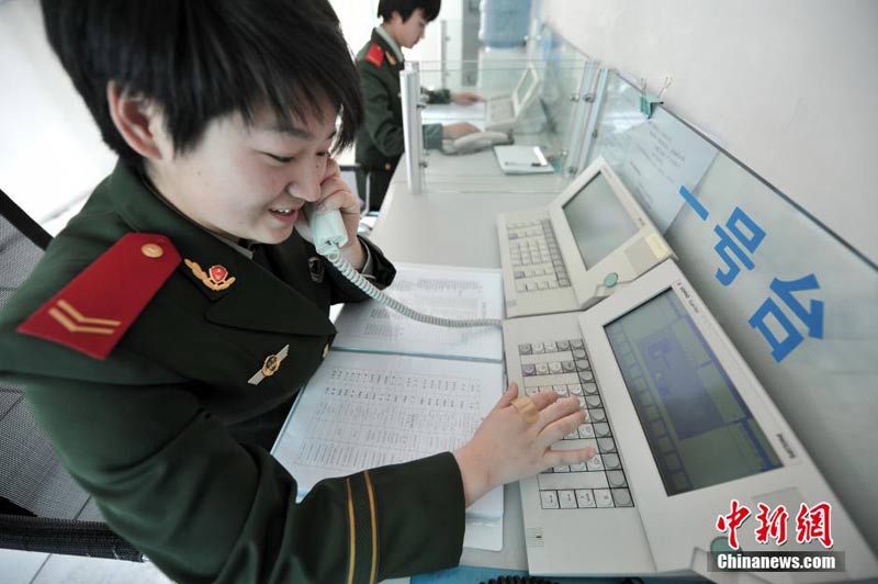 3月18日,王悠在机房练习听力(多重曝光)。出生在湖北荆门的90后女生王悠2012年从湖北荆楚理工学院医学院毕业后,选择了参军入伍,想在部队当一名军医。但来到武警云南总队司令部成为一名话务员的现实和“三点一线”的军营生活,让王悠感觉和她上军校、当军医的理想遥遥无期。经过干部、战友的鼓励让王悠重拾信心,去年年底,王悠被总队评为“优秀士兵”。目前,王悠正在紧张备战一年一度的军校考试,朝着自己的目标迈进。中新社发 郭晓莹 摄