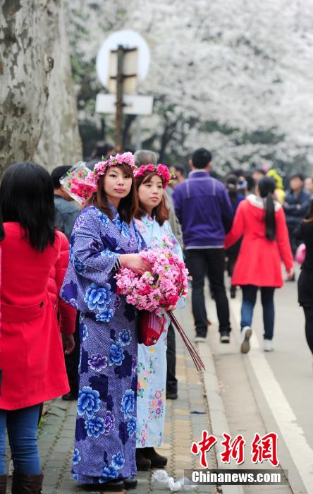 3月23日,中国武汉大学又迎来一年一度的“樱花季”,校园内约200米长的樱花大道上,1000多株樱花竞相绽放,吸引大量游客前来赏花。中新社发 张畅 摄