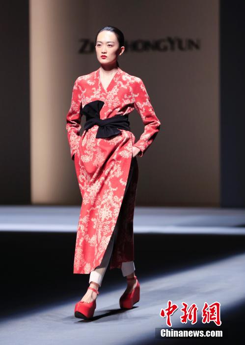 3月22日晚,ZHUCHONGYUN2014秋冬新品发布会在北京举行。图为模特展示时装新品。中新社发 赵隽 摄