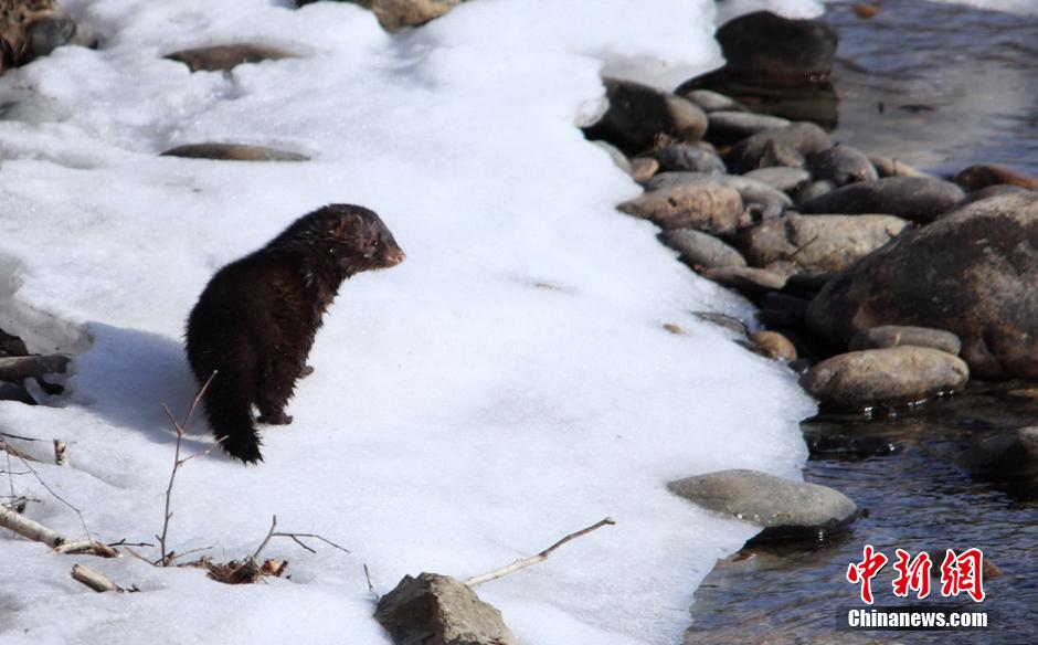 3月下旬,一只野生水貂在新疆阿勒泰地区哈巴河县的哈巴河边活动时被拍摄到,这只水貂直视相机镜头时萌态十足。据了解,水貂是一种半水栖动物,善游泳、潜水。野生水貂多在近水地带利用天然洞穴营巢,它主要在夜间活动,喜食野鼠、鱼、鸟、蛇等,是典型的食肉动物,水貂除交配和哺乳期外,多单独散居。据哈巴河县额尔齐斯河流域湿地野生动物保护办公室专家介绍,野生水貂主要分布在美国、加拿大等地。而我国水貂在地理分布上可能有2个亚种,即北方亚种和青藏亚种。其中北方亚种很少见,这次在哈巴河发现的野生水貂是北方亚种,也是一种珍贵的保护动物。刘是何 摄