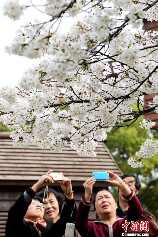 3月26日,古城苏州天气放晴,春光明媚,该市上方山国家森林公园内的2000多棵樱花树进入盛花期,吸引众多市民前来踏青赏樱,在花海中享受春意。