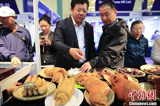 图为展出的奇石吸引不少顾客。中新社发 赵隽 摄