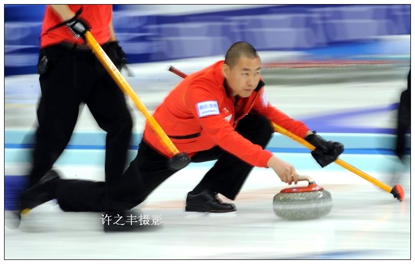 2014年3月30日,2014年世界男子冰壶世锦赛在北京首都体育馆进行第二天,循环赛第二轮中国男队经过加局以11比8战险胜世界劲旅苏格兰队,取得了第一场比赛的胜利。本届锦标赛来自瑞典、瑞士、苏格兰、俄罗斯、挪威、日本、德国、丹麦、捷克、加拿大、美国、中国等12个国家的男子冰壶运动员参加此次盛会角逐冠军奖杯。冰壶世界锦标赛是首次在中国举办,从3月29日到4月6日比赛9天。工人日报-中工网记者许之丰摄影报道