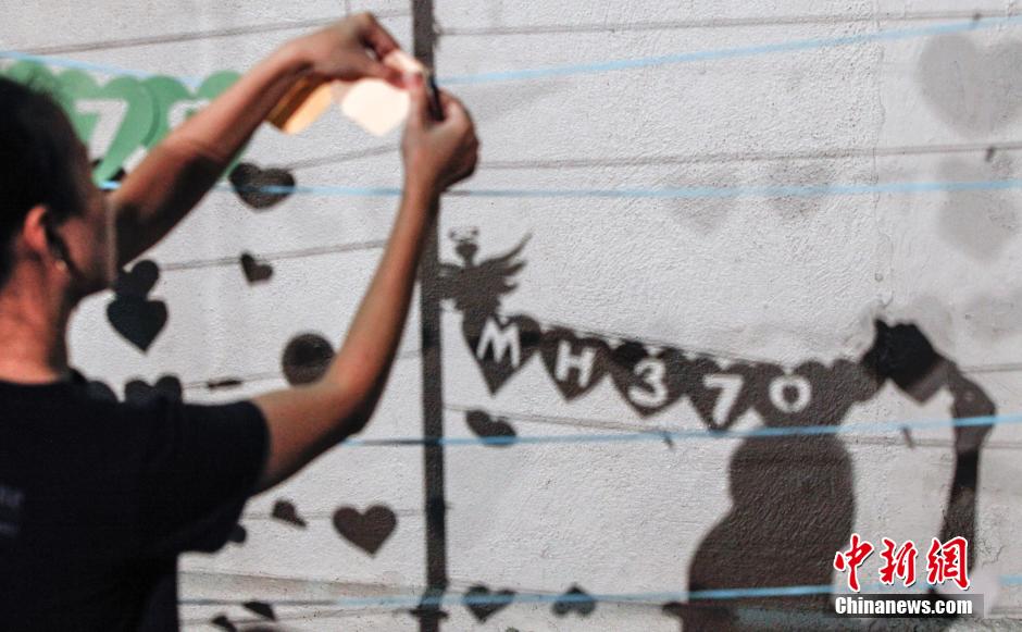 3月30日晚,马来西亚吉隆坡华人组织“隆雪中华大会堂”举办祈福活动,为MH370乘客祈福,图为一名女子挂上一个祝福语。中新社发 张浩 摄