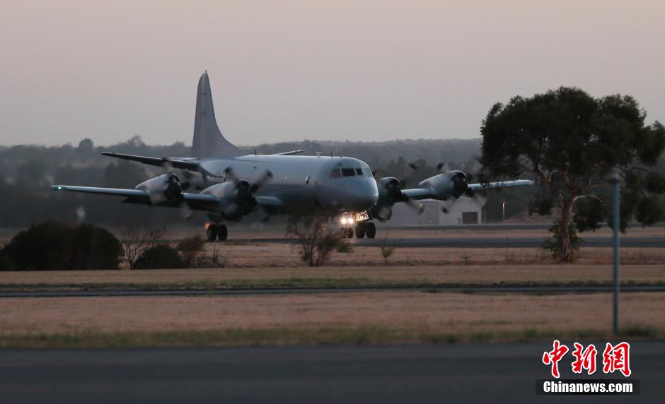 当地时间4月1日,澳大利亚空军一架飞机结束当天搜寻失联航班MH370的任务,返回位于珀斯的皮尔斯空军基地。中新社发 刘关关 摄