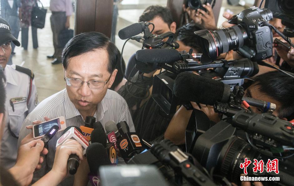 4月1日,马来西亚隆雪华堂会长陈友信在万宜布城酒店门口接受媒体采访。当日,在马中国乘客家属在酒店会见了马来西亚华团,出席的华团领袖还包括马中经贸总商会会长黄汉良、马中友好关系协会会长陈凯希等。中新社发 张浩 摄