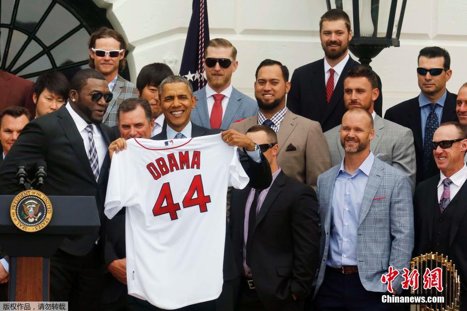 奥巴马白宫接见MLB总冠军红袜队 获赠球衣露笑颜
