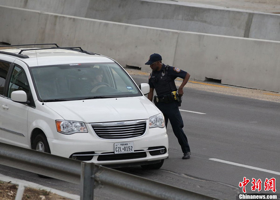 当地时间4月2日,美国胡德堡(Fort Hood)军事基地发生枪击事件,有一到两名男性嫌犯开枪,事件造成多人受伤,一人死亡。图为枪击事件发生后,警方在军事基地大门外盘查过往车辆。