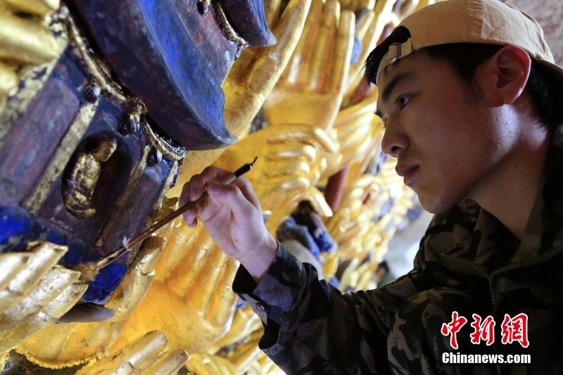 重庆大足“国宝”千手观音完成230只手贴金修复