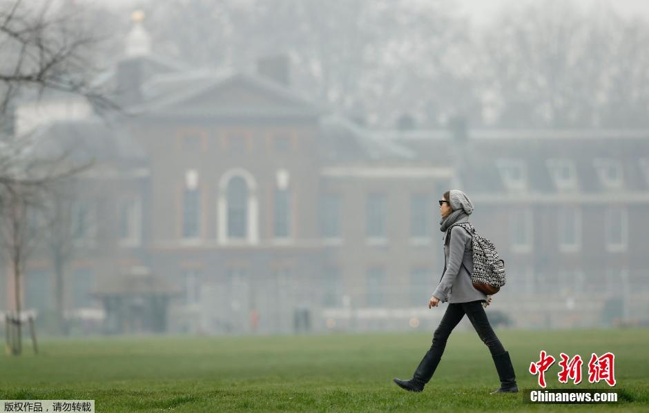 当地时间2014年4月3日,英国伦敦近日空气污染严重,雾霾密布。民众戴口罩出行。