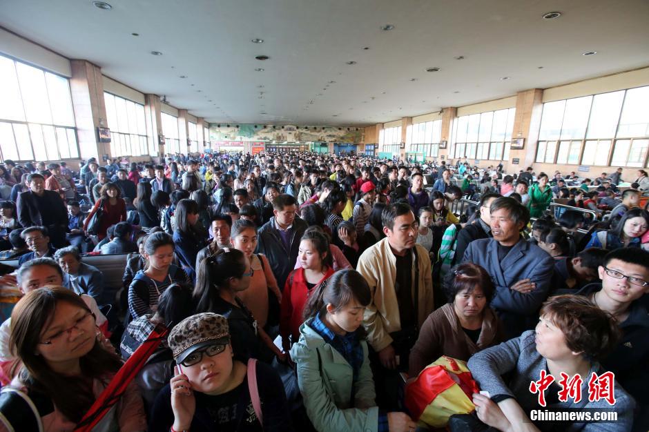 随着清明节即将来临,中国各地民众祭拜先祖,交通出现客流高峰,不少外地人员为避免4月4日的返乡高峰期,选择提前乘车回家。4月3日,山西太原火车站,旅客们走向月台乘车返乡。中新社发 张云 摄