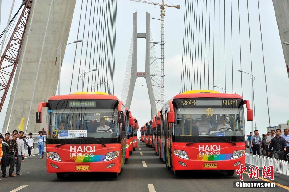 4月4日,海南省迄今为止最大跨度的跨海大桥——洋浦大桥建成通车,海口至洋浦一小时交通圈全线贯通。据了解,洋浦大桥起于洋浦经济开发区,落至儋州市白马井镇,全长3.3公里,其中主桥长820米,南引桥长734米,北引桥长554米,是海南桥梁史上施工难度最大、技术标准最高的跨海大桥。设计行车速度每小时80公里,总投资9.15亿元(人民币)。骆云飞 摄
