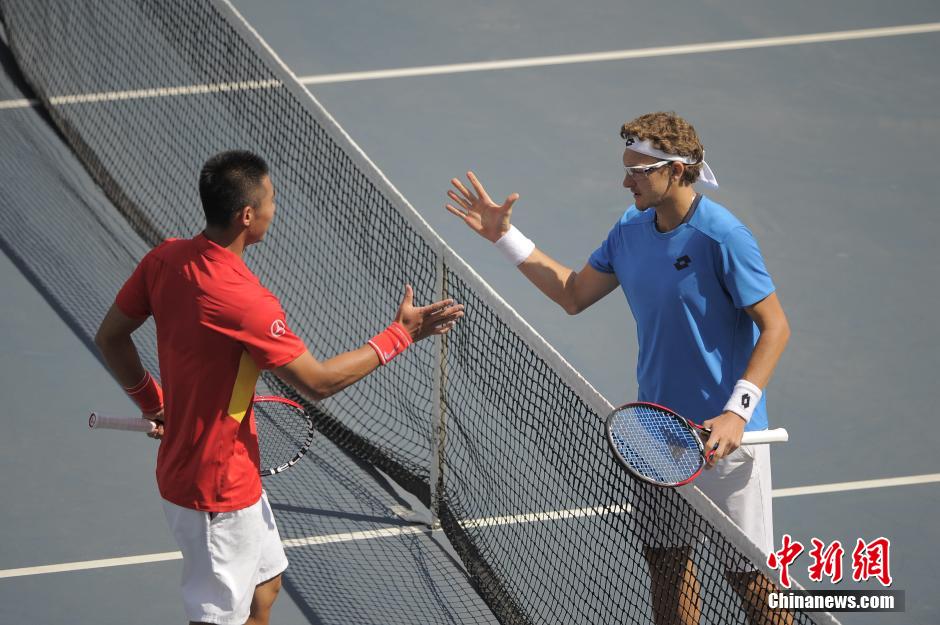 4月4日,张择(左)在比赛结束后与伊斯托明(右)握手。