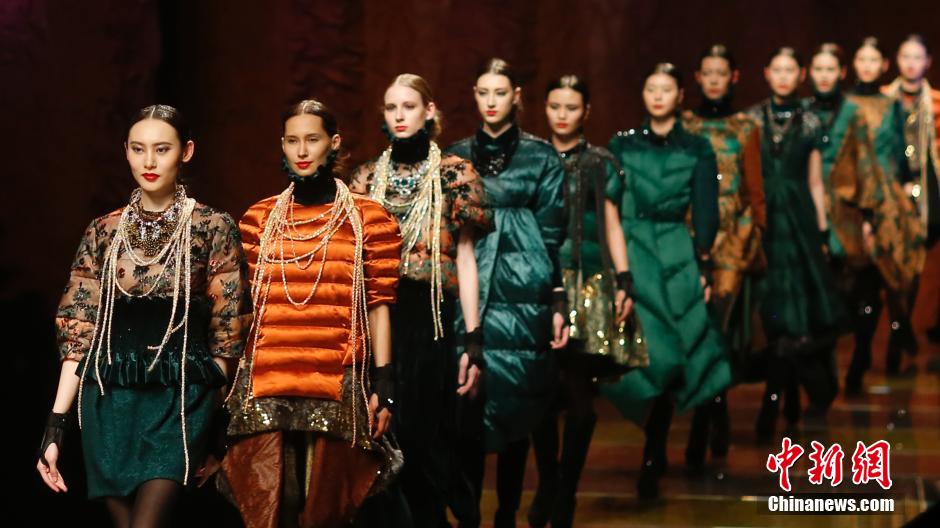 3月26日,模特在中国国际时装周(2014/2015秋冬系列)T台上展示波司登服装。当日,波司登2014/2015秋冬成衣流行趋势在北京举行。中新社发 盛佳鹏 摄