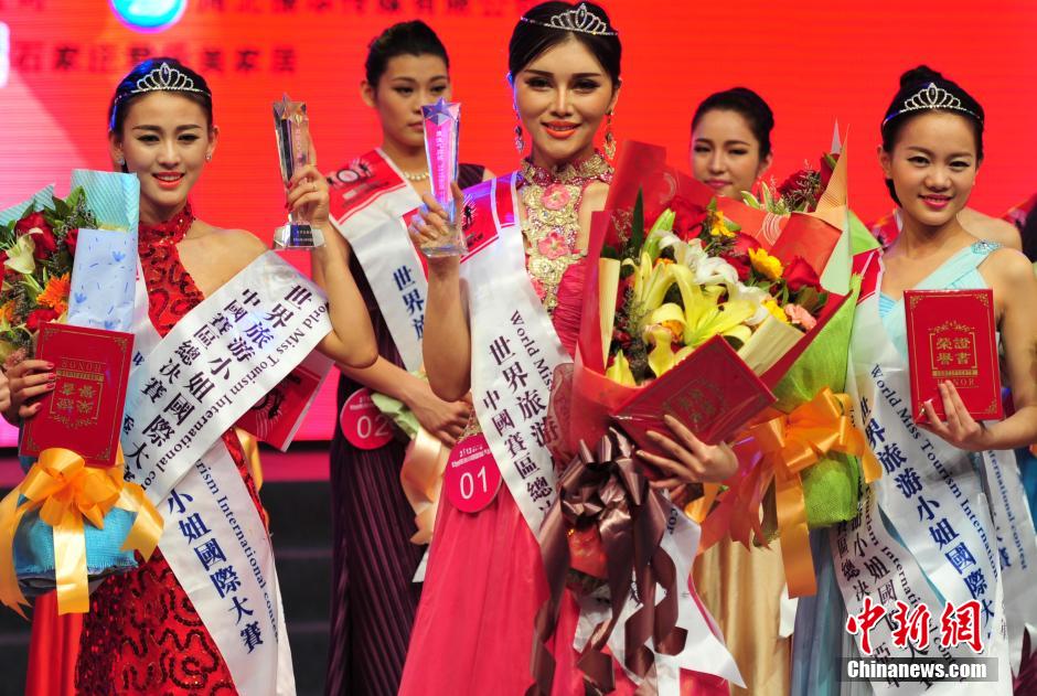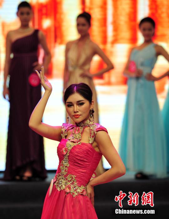 图为夺得该赛事冠军的1号新疆选手米娜展示晚装。中新社发 翟羽佳 摄