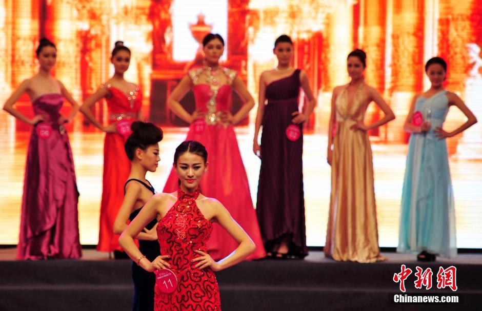 图为夺得该赛事季军的11号选手,来自新疆的杨天玉晚装表演。中新社发 翟羽佳 摄