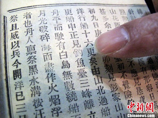 4月8日,香港普艺拍卖展示即将拍卖一本名为《使琉球记》的古籍,载有清朝嘉庆时期官员出海途经钓鱼岛,证明钓鱼岛早已是中国领土一部份。中新社发 谭达明 摄