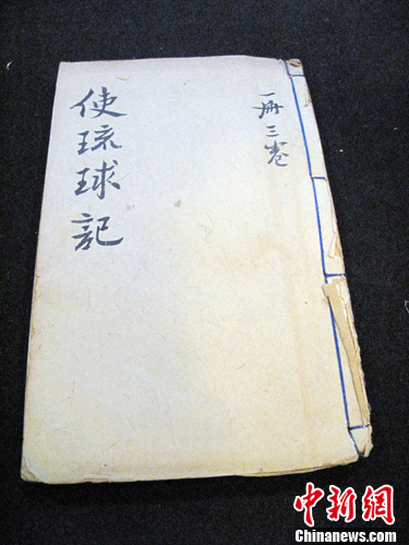 香港普艺拍卖展示即将拍卖一本名为《使琉球记》的古籍。中新社发 谭达明 摄