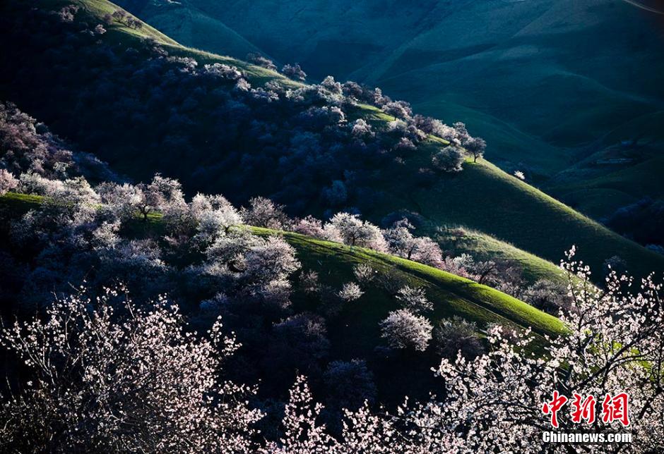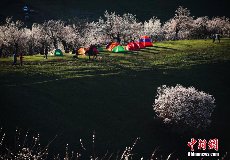 4月10日,新疆新源县吐尔根乡山间的原始野杏林杏花怒放,绵延十余公里,吸引附近众多游客前往踏青、赏花,陶醉于山间美色流连忘返。更有大批摄影发烧友一大早就扛着长枪短炮爬上山顶,只为扑捉那色彩斑斓的光影世界。据介绍,吐尔根野杏林是中世纪遗留最大的原始野杏林,占地有3万多亩,因山地河谷的冬季逆温气候而遗存下来,是中国西北地区野杏林最集中的地区。刘新 摄