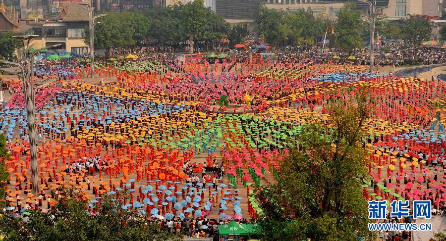 云南西双版纳万人跳伞舞 刷新世界纪录