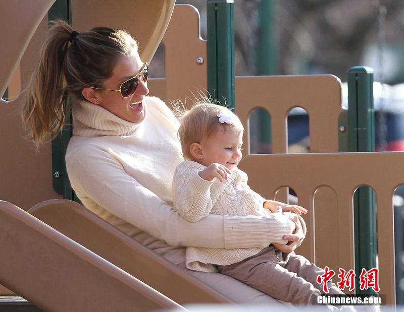 当地时间2014年4月20日,美国波斯顿,吉赛尔-邦辰与家人公园游玩好温馨。