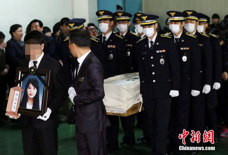 当地时间2014年4月22日,韩国仁川,人们为年仅22岁的朴智英举行葬礼。4月16日,韩国“岁月”号客轮在全罗南道珍岛郡屏风岛以北20公里海上发生沉没事故,第一位被确认的遇难者为清海镇海运公司乘务员,年仅22岁的女孩朴智英。据悉,朴智英一直在坚持引导船内乘客逃生,最后不幸殉职。《亚洲经济》等韩国媒体称赞她为“最美乘务员”。