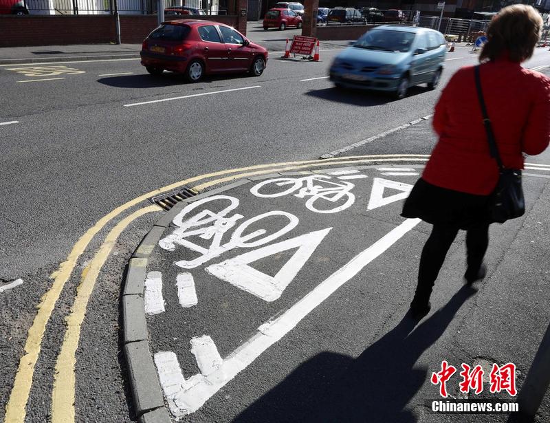 当地时间2014年4月22日,英国切斯特菲尔德,一条世界上最短地自行车道出现在了路上,这条自行车道仅长4米,自行车手们只能骑车过把瘾就走。