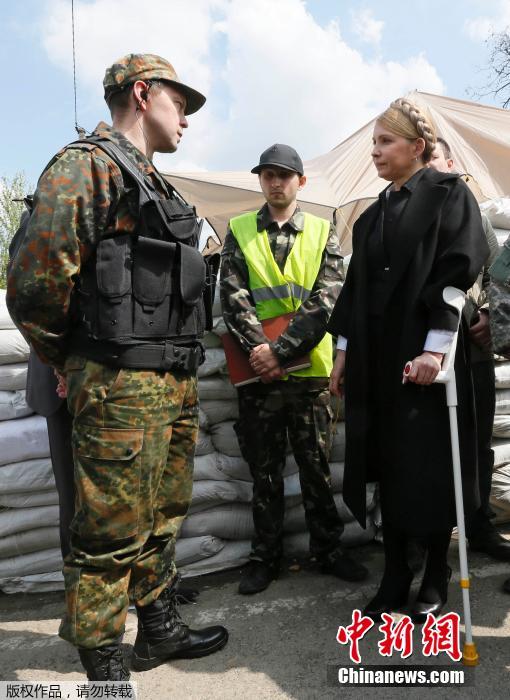 当地时间2014年4月22日,乌克兰前总理、总统候选人季莫申科访问乌东部地区。