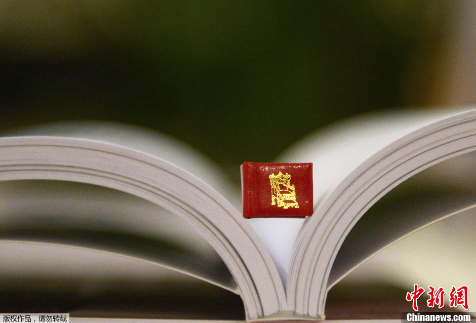 4月24日,斯里兰卡科伦坡,一名女子展示由斯里兰卡著名厨师Publis Silva推出的微型食谱书,该书的长宽仅有1厘米,重量仅为5毫克,书内包含了40份食谱。
