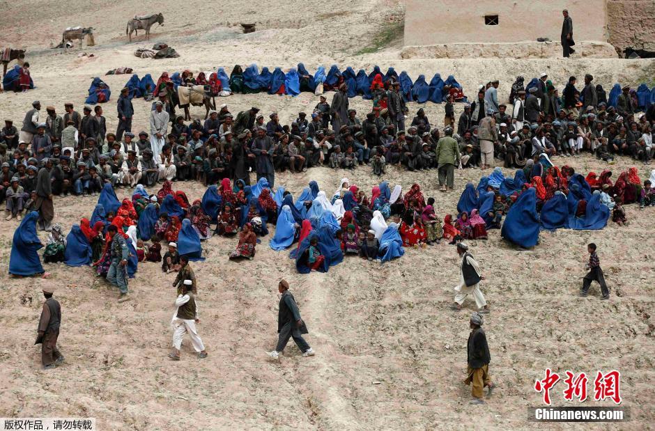 当地时间2014年5月4日,阿富汗巴达赫尚省,山体滑坡受灾区民众等待物资救援。阿富汗第二副总统哈利利3日透露,2日发生在阿东北部巴达赫尚省的山体滑坡已造成至少255人遇难。参与救援的国际移民组织认为,灾害致死人数最高可达2700人。