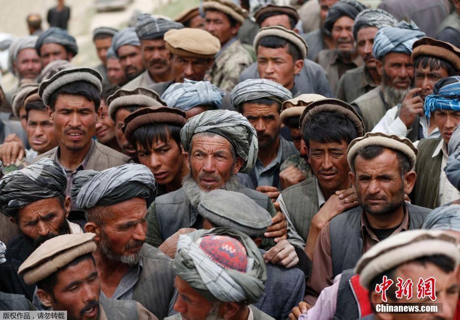 当地时间2014年5月4日,阿富汗巴达赫尚省,山体滑坡受灾区民众等待物资救援。阿富汗第二副总统哈利利3日透露,2日发生在阿东北部巴达赫尚省的山体滑坡已造成至少255人遇难。参与救援的国际移民组织认为,灾害致死人数最高可达2700人。