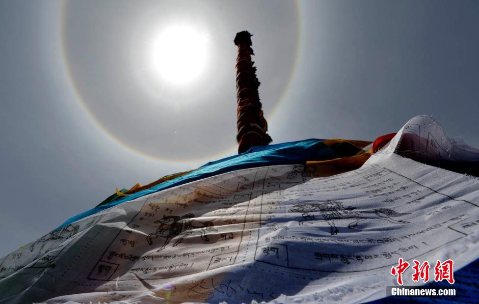 5月5日,拉萨上空出现日晕奇观。日晕是一种大气光学现象,是日光通过卷层云时,受到冰晶的折射或反射而形成的。李林 摄