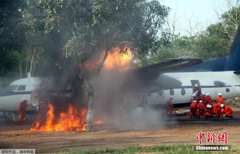 缅甸消防队日 消防员展示灭火技巧