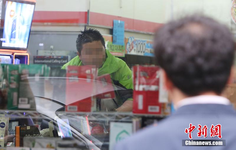 当地时间2014年5月8日,韩国釜山,上午9时50分许,一名30多岁男子在一家便利店劫持20多岁女店员,与警方对峙2小时后被逮捕。