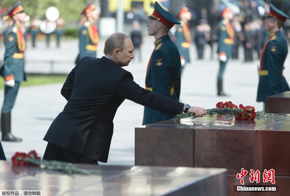 当地时间5月8日,俄罗斯莫斯科,俄罗斯总统普京向无名烈士墓献花,悼念反法西斯战争中牺牲的苏联红军战士。