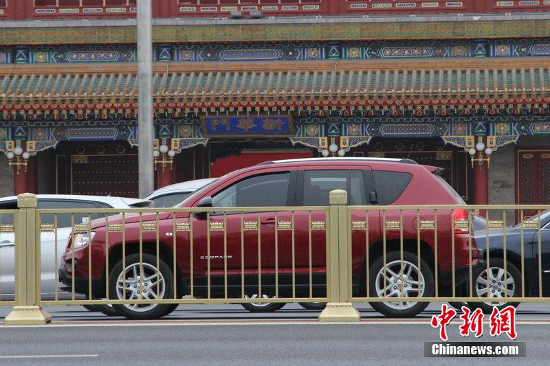 2014年5月9日,北京长安街金色护栏。图片来源:CFP视觉中国
