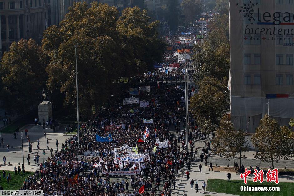 当地时间2014年5月8日,智利圣地亚哥防暴警察与抗议者发生冲突,抗议者向警察扔汽油弹,在逃跑过程中,防暴警察绊倒,身上着火。数万名学生参加游行抗议,要求政府实施教育改革。