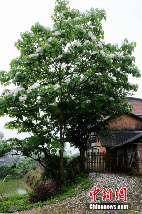 5月8日,位于广西融安县长安镇209国道旁山坡上,数百余棵油桐花同时盛开,延绵数公里,满山遍野百花点点,令不少过往车辆停车驻足、拍照留念。油桐树结果后可以提炼桐油,桐油是当地的船家用于龙舟、木船、渔具的防水、防腐涂料。卫纲 摄