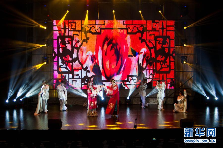 5月8日,歌舞版昆曲《牡丹亭》登上北京交通大学天佑会堂。歌舞版《牡丹亭》融入《烟花易冷》《卷珠帘》《女人花》等流行歌曲,配合现代化的舞台布景、灯光设计和舞蹈动作,让观众通过现代观感体验到六百年前的古戏曲魅力。据了解,歌舞版《牡丹亭》是天津卫视《国色天香》栏目“戏曲进高校”项目的首场演出,旨在号召当代年轻人更多地关注中国戏曲艺术。新华社记者张铖摄