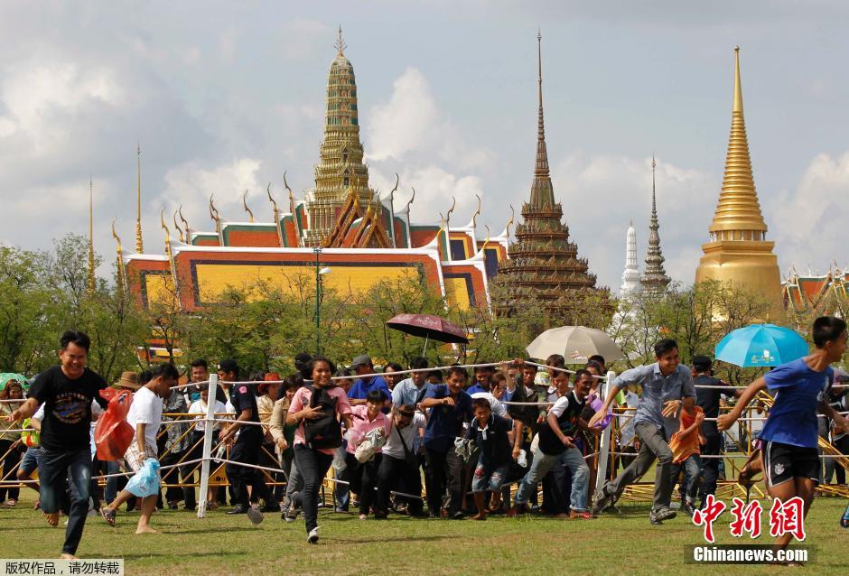泰国举行皇家耕种大典 民众冲破栏杆哄抢稻种