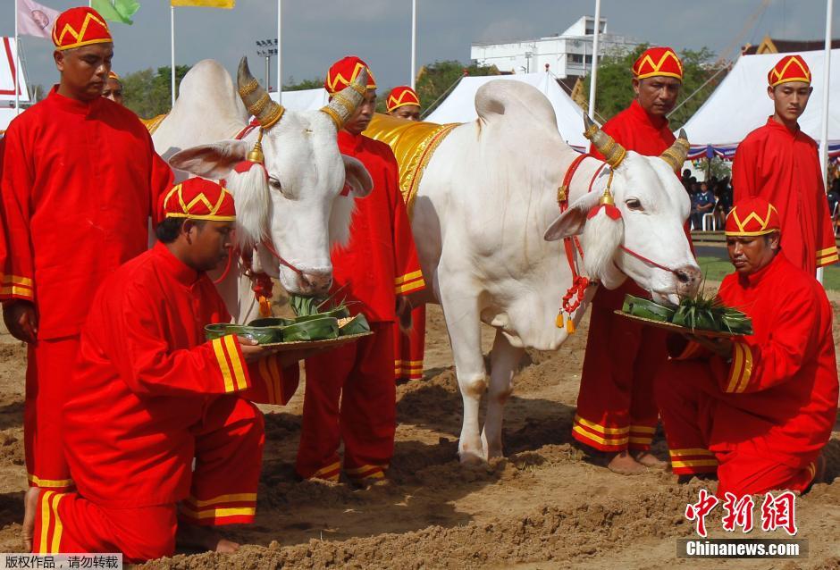 当地时间5月9日,泰国曼谷,泰国皇家耕种大典举行。皇家耕种大典是为了庆祝水稻种植季节的到来。